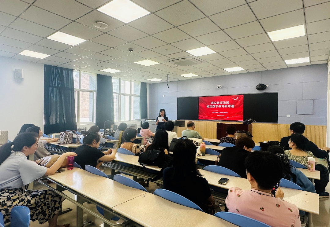 2025年9月8日上午12:00,外国语学院大学外语第二教学部全体教师在鄠邑校区博览楼201室开展了外国语学院大学外语第二党支部2025年第三季度政治理论学习扩大会议,会议由党支部书记李红主持,支部全体教师参会,围绕“建设教育强国,推动数字教育新跨越”主题展开深入探讨。