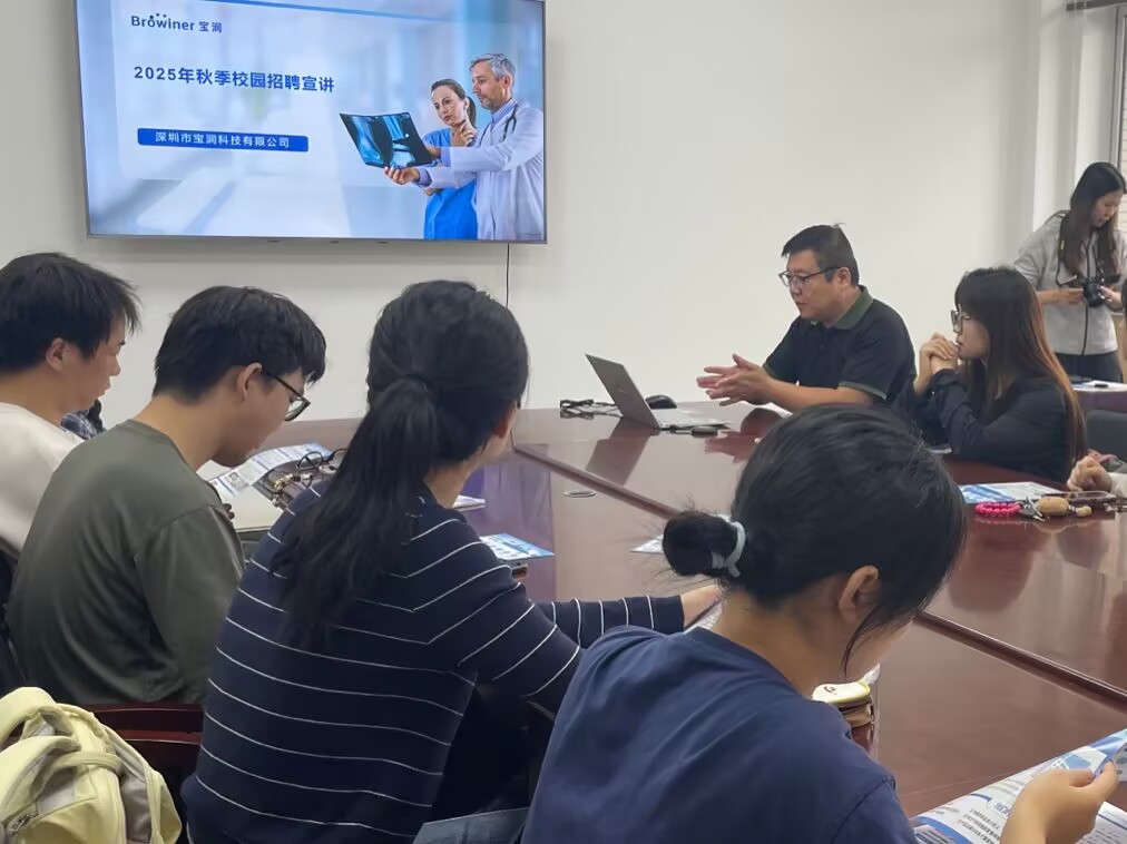 宣讲会上,企业代表通过宣传视频、PPT展示结合现场讲解的形式,向同学们系统介绍了宝润科技的发展历程、企业文化、组织架构与核心业务,并对公司未来发展规划进行详细阐述。针对本次面向学院毕业生的招聘需求,他重点解读了国际销售专员岗位的职责要求。在互动提问环节,现场气氛热烈,同学们围绕职业晋升空间、工作地点分布、员工培训体系等核心关切问题踊跃提问。企业代表耐心细致地逐一回应,进一步加深了大家对企业的认知与信任。