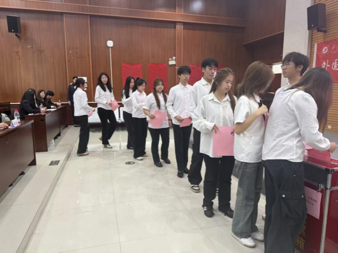 10月30日,外国语学院第十三次团委届内调整暨学生代表大会在鄠邑校区崇文楼118多功能厅隆重召开。校团委副书记王军策、外国语学院各年级团总支书记、校学生会执行主席以及各兄弟院(系)学生会负责人,本次大会学生代表共150余人参加。