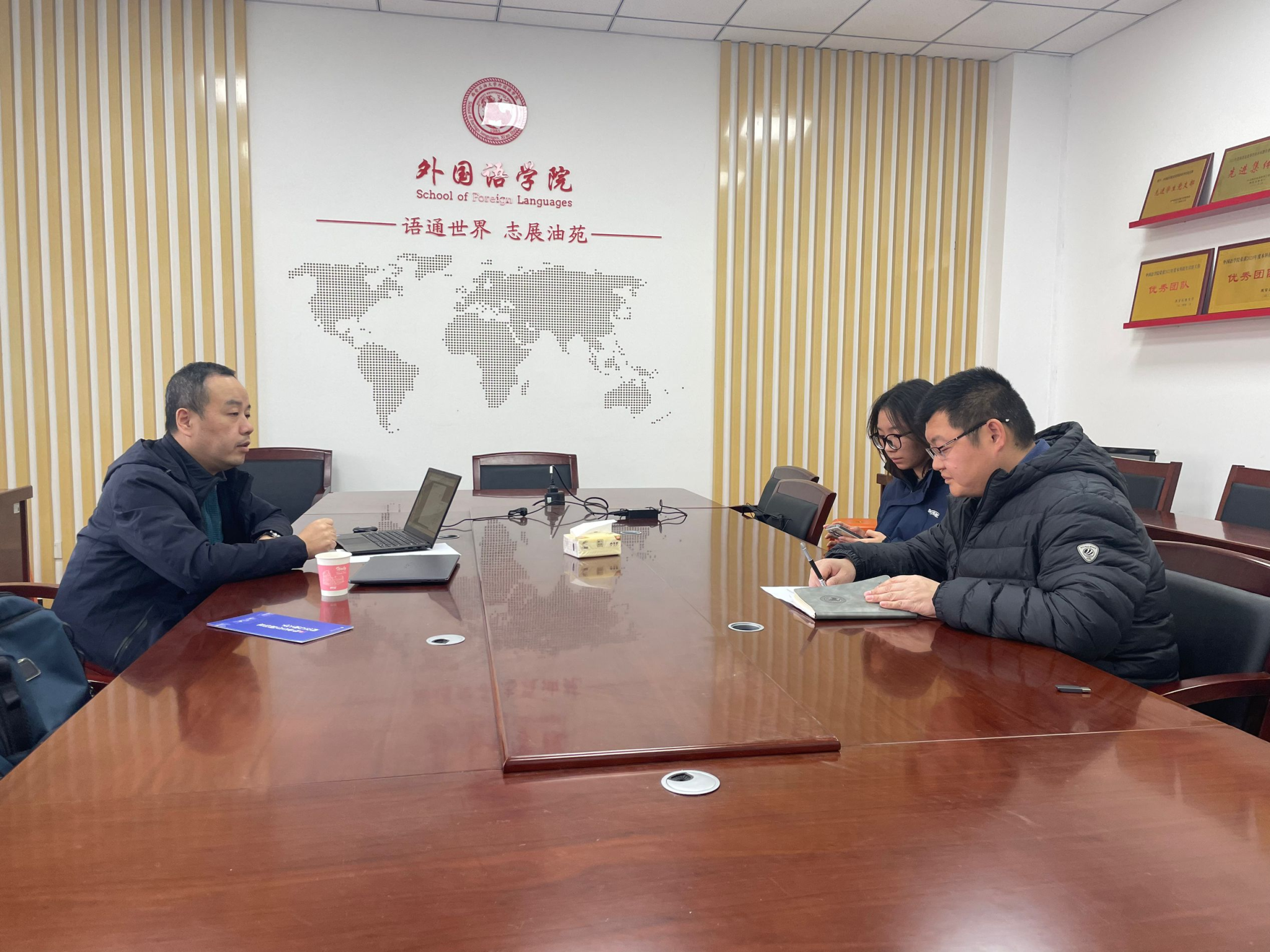 11月19日,合橙网络科技有限公司负责人到访外国语学院,双方就学生就业工作进行交流座谈。外国语学院和经济管理学院毕业班辅导员参加会议。