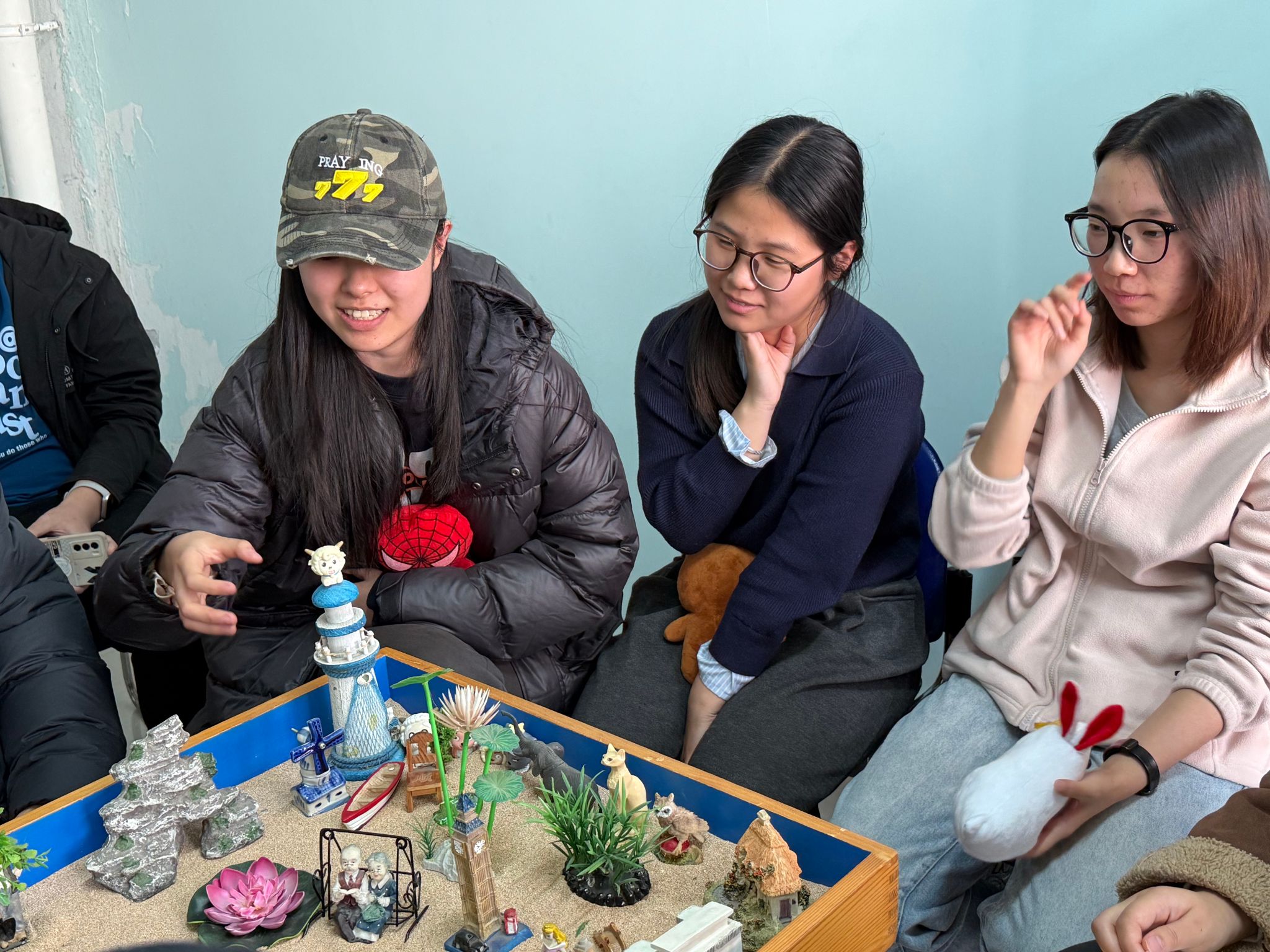 沙盘创作完成后,一场“敞开心扉”的分享交流会随即展开。在心理老师的温和引导下,同学们逐一站在自己的沙盘作品前,阐述创作思路、分享内心感受。同学们的分享真挚而坦诚,从学习状态到人际关系,从目标困惑到自我鼓励,每一段讲述都展现着考研路上的坚守与思考。