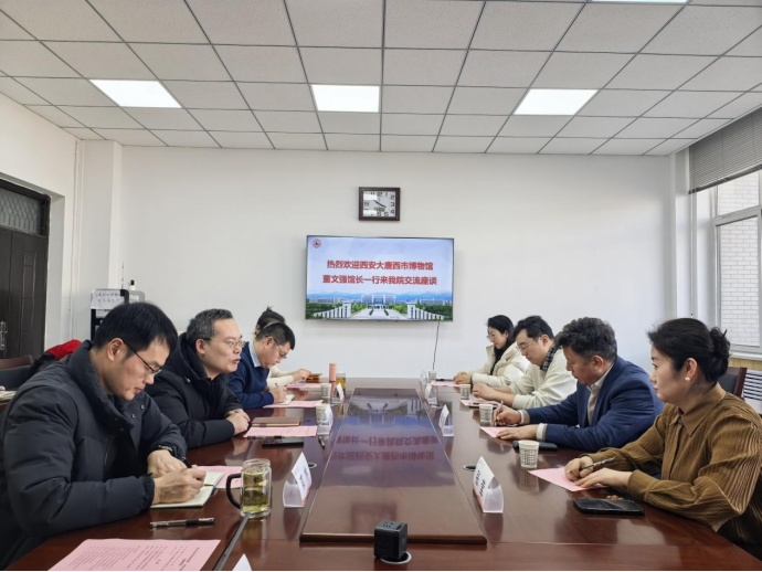1月6日下午,西安大唐西市博物馆馆长董文强一行5人莅临我院,开展座谈交流。交流会在鄠邑校区崇文楼314会议室举行,外国语学院党政领导及师生代表参会。