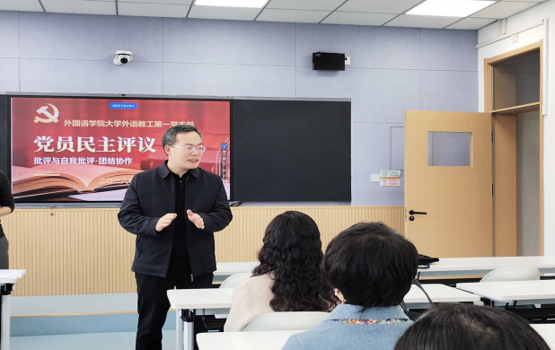 为深入推进党的自我革命,强化党员责任担当,3月10日,外国语学院大学外语教工第一党支部在鄠邑校区A103教室召开以“批评与自我批评·团结协作”为主题的党员民主评议暨专题组织生活会。会议由第一党支部书记付俊芳主持,学院党委书记张建高出席会议并讲话。